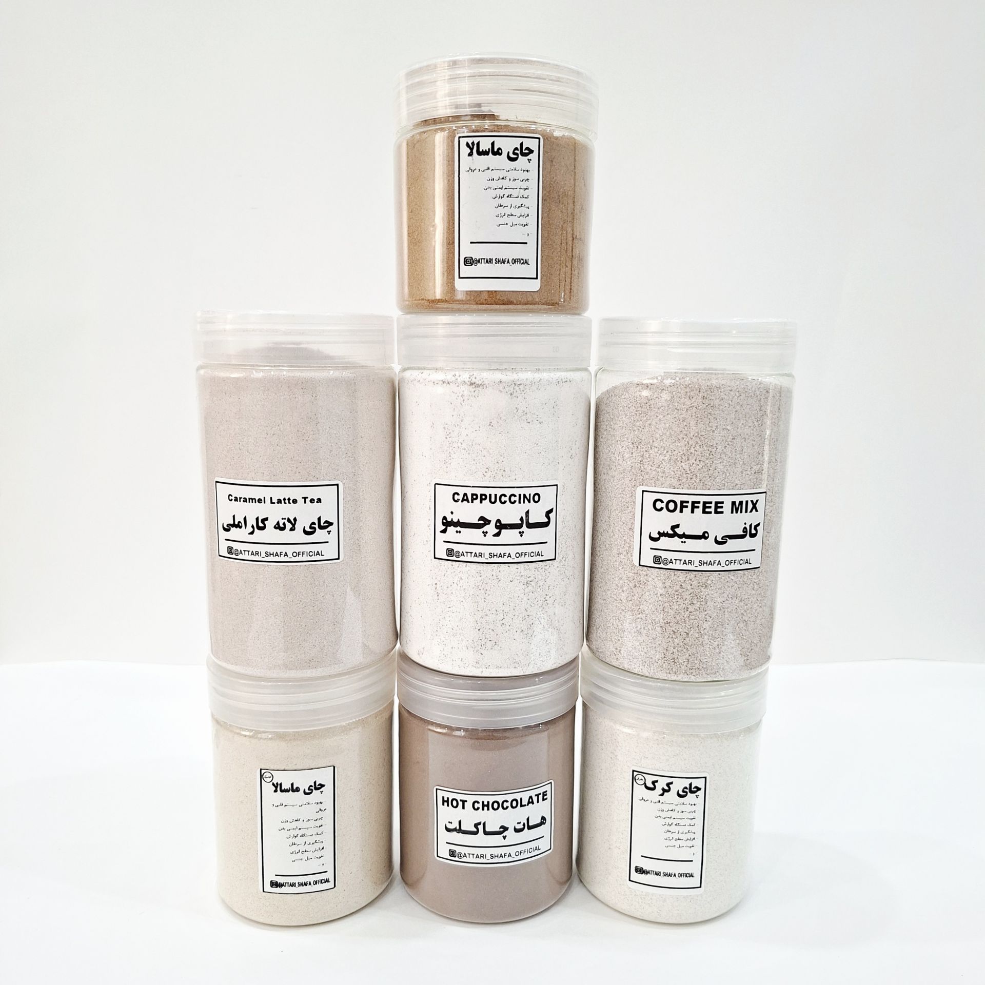 همه محصولات پودرهای فوری و باکیفیت هستند و فقط با آب جوش یا شیر آماده میشوند.